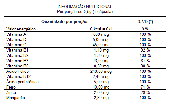 Polivitamínico Feminino, especialmente para mulher na fase adulta. Alto teor de Vitaminas e Minerais, fonte de Zinco, rico em Ácido Fólico. Vitaminas A, C e Zinco atuam como Antioxidante natural auxiliando no retardo do envelhecimento. Ação antioxidante e proteção ao Coração. Aumenta a energia e imunidade.